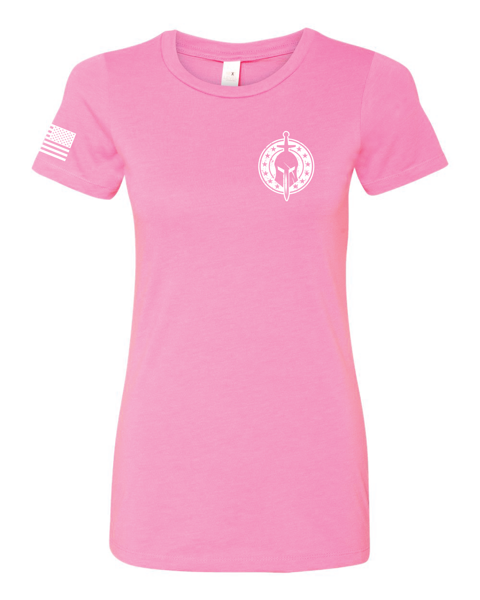 Pink Colored Sand, White Text - Next Level T-shirt, 50% Polyester, 25% Combed Ring-Spun Cotton, 25% Rayon